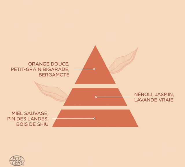 Bergamote et néroli en cœur nous entourent ensuite de douceur, tandis que les notes de fond (miel sauvage, pin des Landes et bois de shiu) se font plus enveloppantes. Une pulvérisation et déjà notre esprit s’apaise...